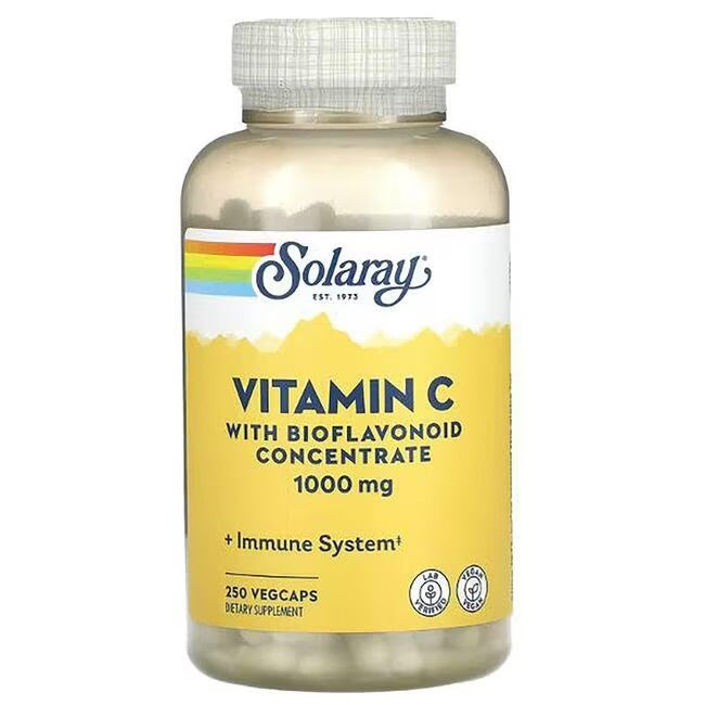 Boost your immune system with Solaray's Vitamin C with Bioflavonoids Concentrates 1000MG. This powerful supplement contains 1000MG of Vitamin C, along with bioflavonoids that enhance its absorption. Promote healthy skin, strengthen blood vessels, and support overall wellness with this expertly crafted formula.